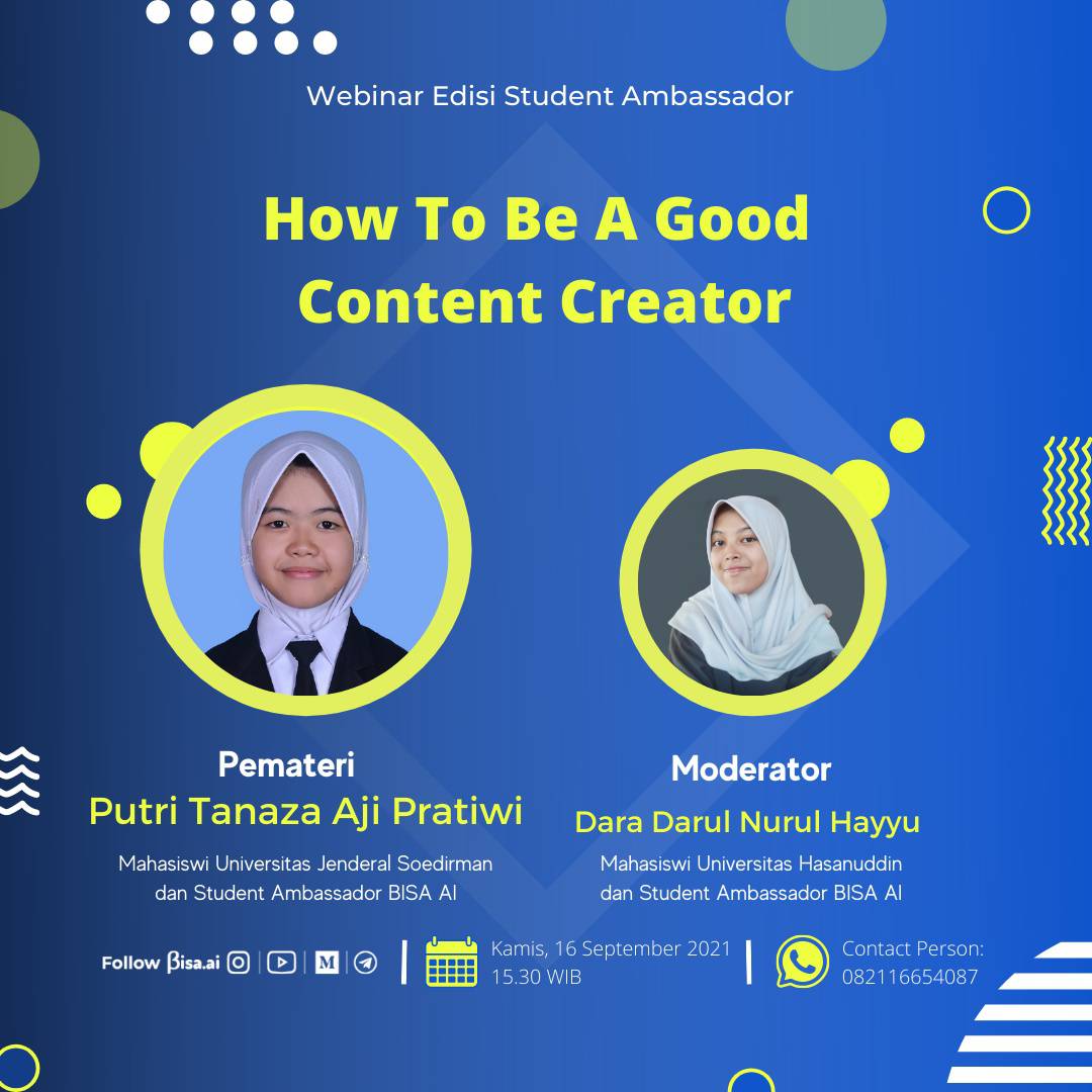 Di webinar kali ini kita akan membahas mengenai How To Be A Good Content Creator