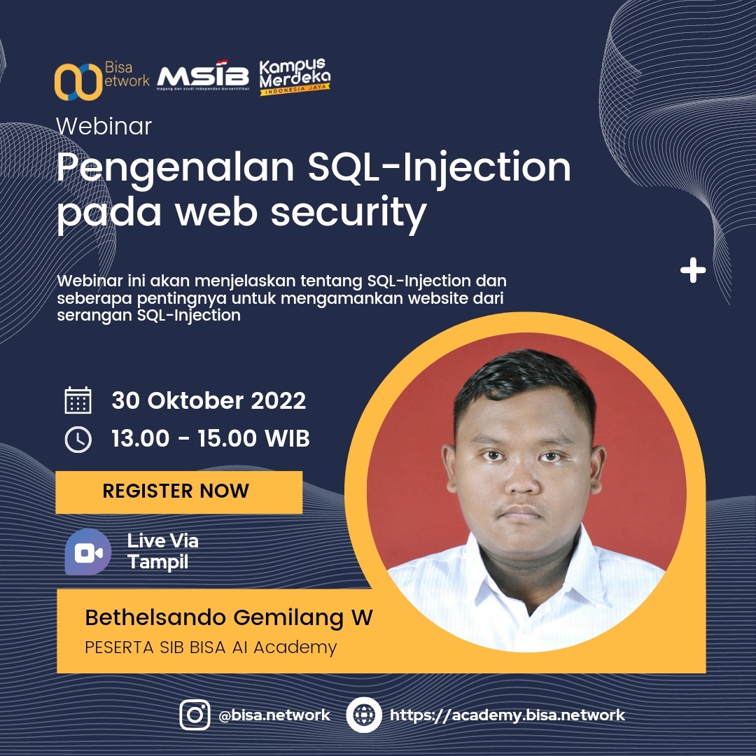 Webinar ini akan menjelaskan tentang SQL-Injection dan seberapa pentingnya untuk mengamankan website dari serangan SQL-Injection, Dengan :