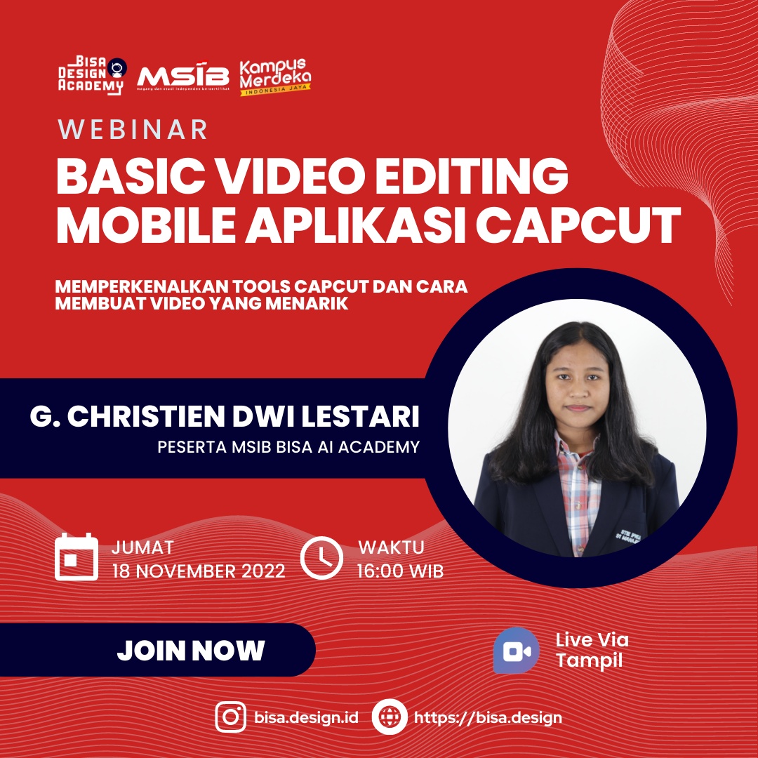 Judul dari Webinar ini adalah Basic Video Editing Mobile Aplikasi Capcut, saya terinspirasi dari course mandiri yang saya kerjakan tentang cupcut. Jadi dibawah ini adalah beberapa hal/alur yang nantinya akan saya sampaikan :