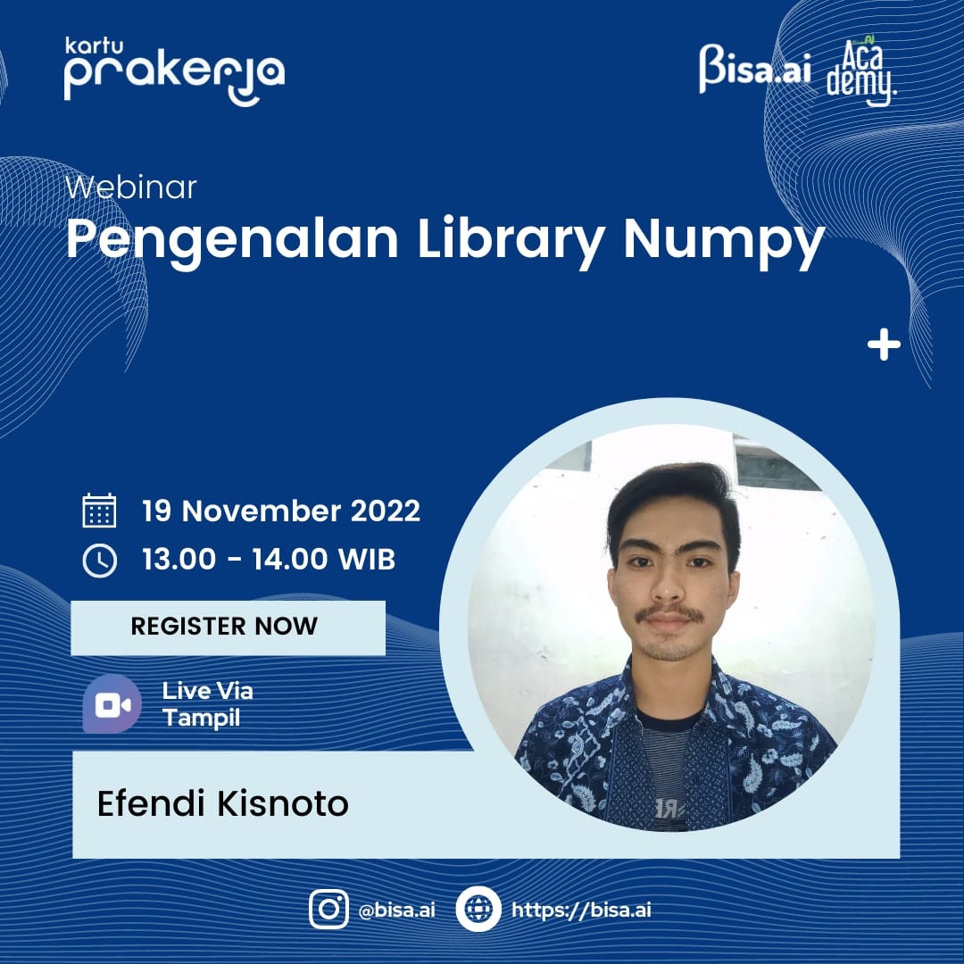 Library Numerical Pythone atau yang sering kita kenal dengan sebutan liberary numpy merupakan librari yang memiliki Array serta memiliki fungsi yang bekerja dalam domain aljabar linier, transformasi fourier, dan matriks.