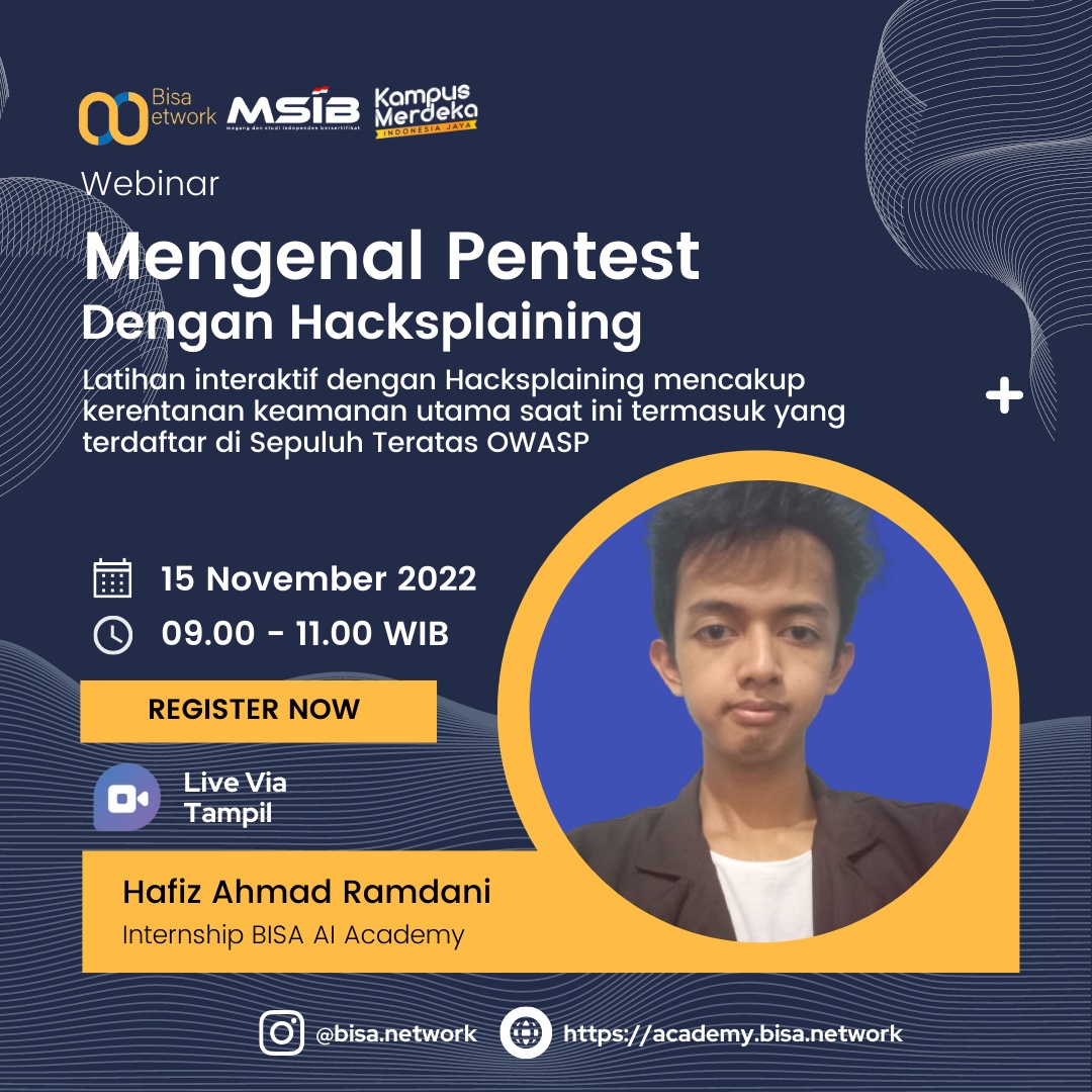 Webinar ini adalah tentang pengenalan penetration testing yang memakai platform hacksplaining sebagai acuanaya,