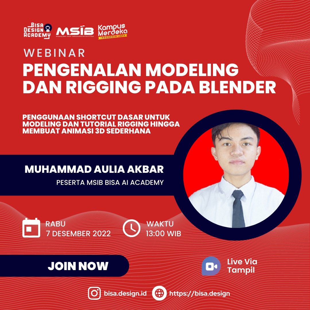 Penggunaan shortcut dasar untuk modeling dan tutorial rigging hingga membuat animasi 3D sederhana, dengan :