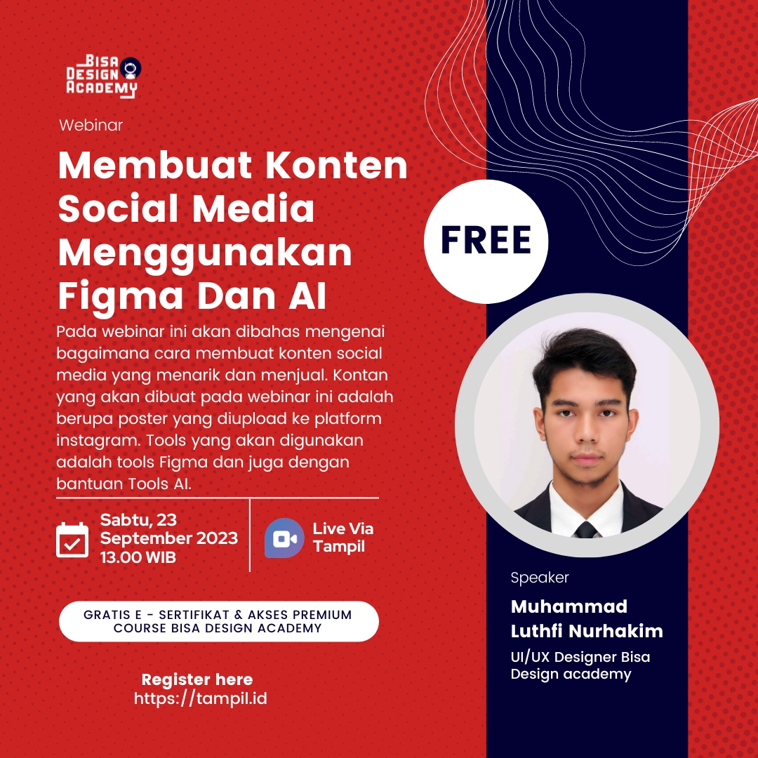 Pada webinar ini akan dibahas mengenai bagaimana cara membuat konten social media yang menarik dan menjual. Kontan yang akan dibuat pada webinar ini adalah berupa poster yang diupload ke platform instagram. Tools yang akan digunakan adalah tools Figma dan juga dengan bantuan Tools AI. Webinar ini akan diselenggarakan pada :