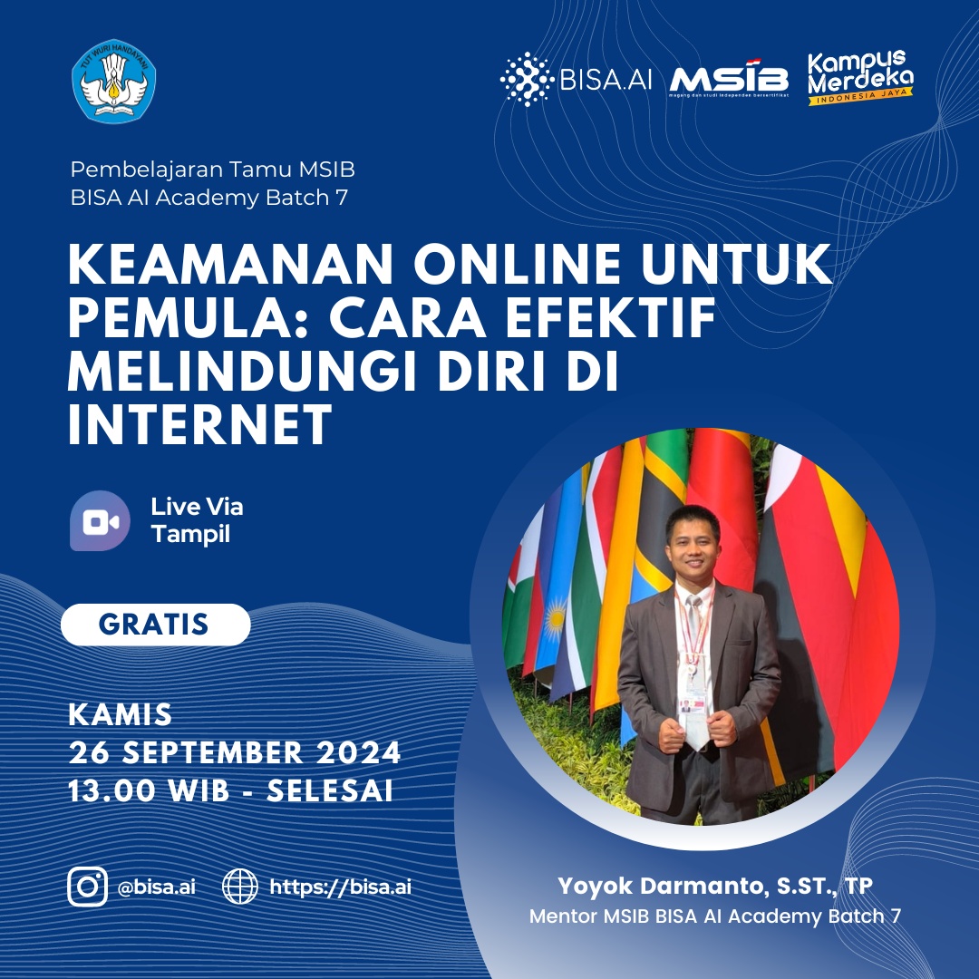 Di era digital saat ini, keamanan online menjadi semakin penting untuk melindungi informasi pribadi dan aktivitas kita dari ancaman siber. Webinar ini dirancang khusus bagi pemula yang ingin memahami dasar-dasar keamanan online dan belajar cara melindungi diri mereka dari risiko seperti peretasan, pencurian identitas, dan serangan siber lainnya.