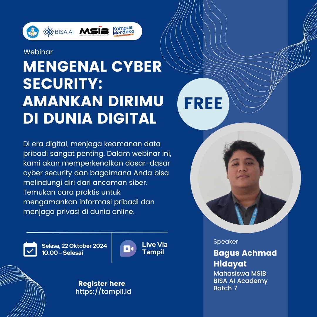 Di era digital, menjaga keamanan data pribadi sangat penting. Dalam webinar ini, kami akan memperkenalkan dasar-dasar cyber security dan bagaimana Anda bisa melindungi diri dari ancaman siber. Temukan cara praktis untuk mengamankan informasi pribadi dan menjaga privasi di dunia online.