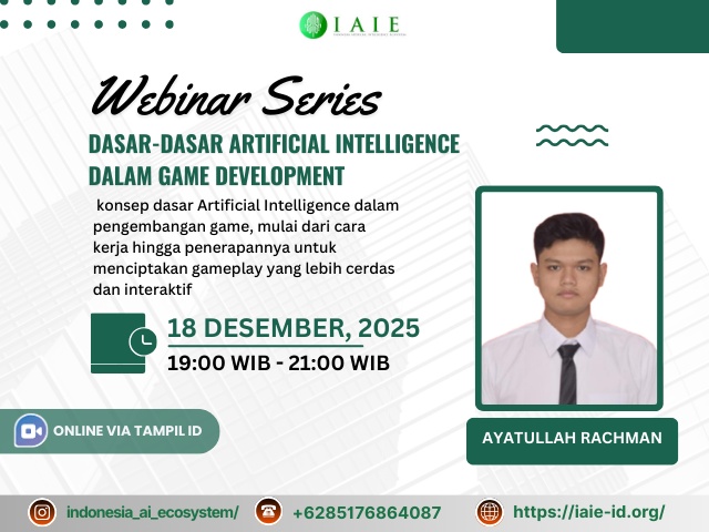 Dalam Webinar Series: Dasar-Dasar Artificial Intelligence dalam Game Development, Anda akan dibimbing cara memahami konsep dasar AI, mulai dari alur kerja hingga penerapannya yang mampu menciptakan pengalaman bermain yang lebih baik dan interaktif.